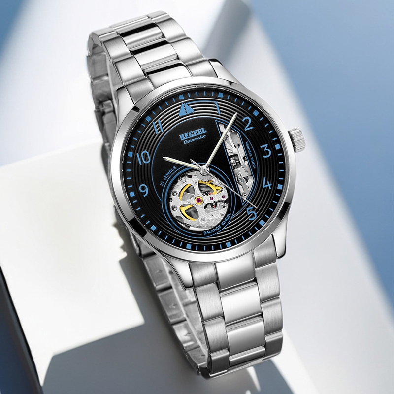 字面:日内瓦纹理,镂空黑面,夜光刻度设计