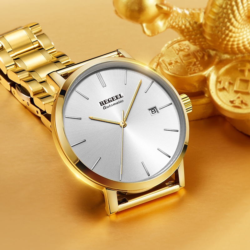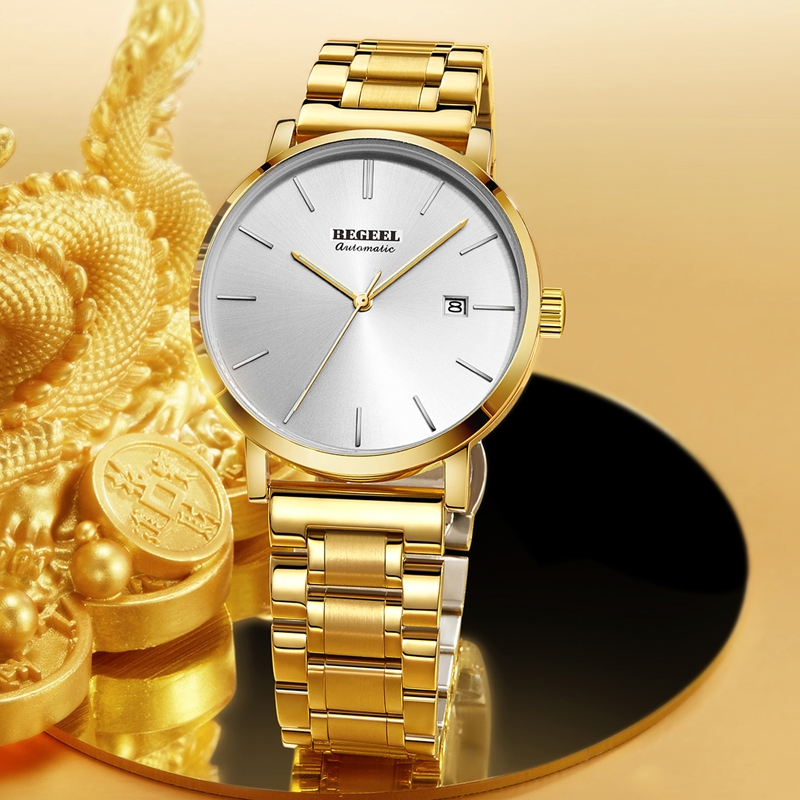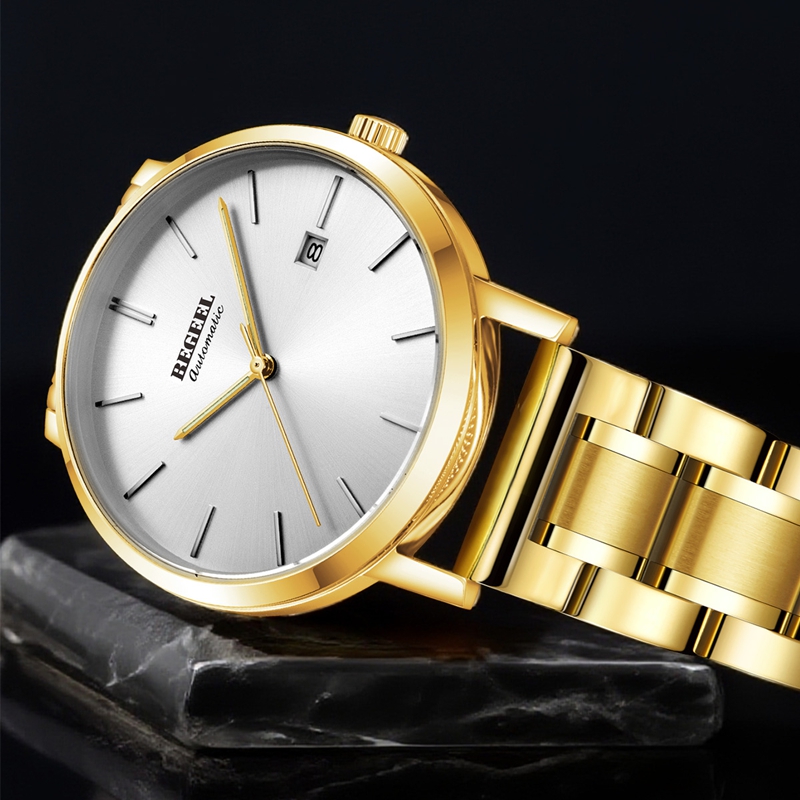 以划破夜空的黎明之剑为主要设计灵感,寓意光明与守护、刚毅与纯真,腕表整体设计风格经典大气、气度不凡,电镀真金精钢表壳搭配纯色表盘,高级儒雅,夜光指针,极简数字日历框,于锐气凌厉之中体现男士隐藏于简单之后的先锋精神,沉稳内敛,不拘一格。