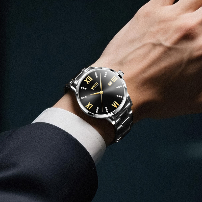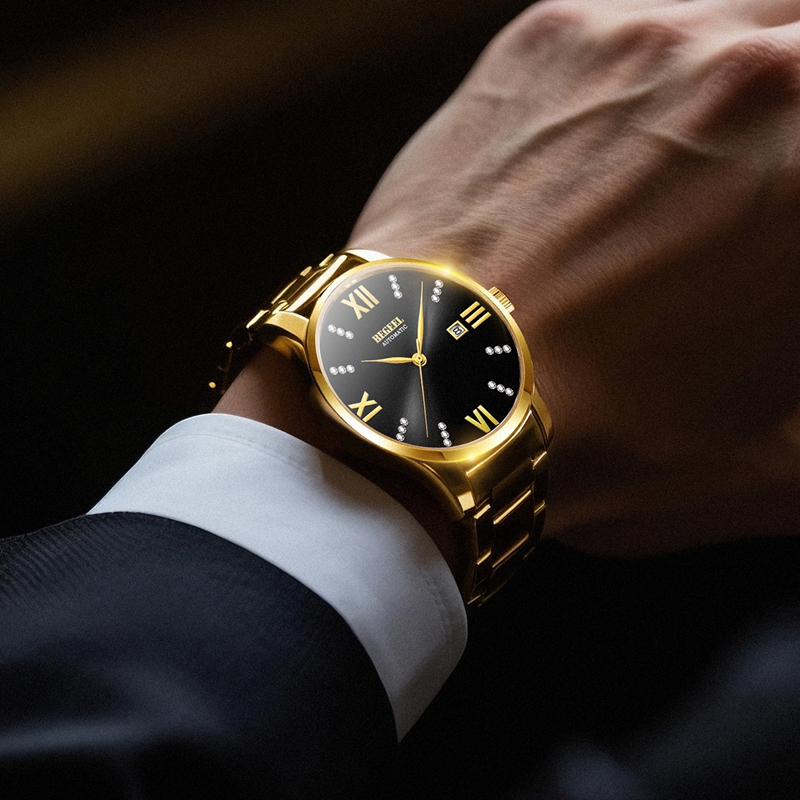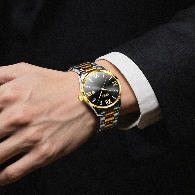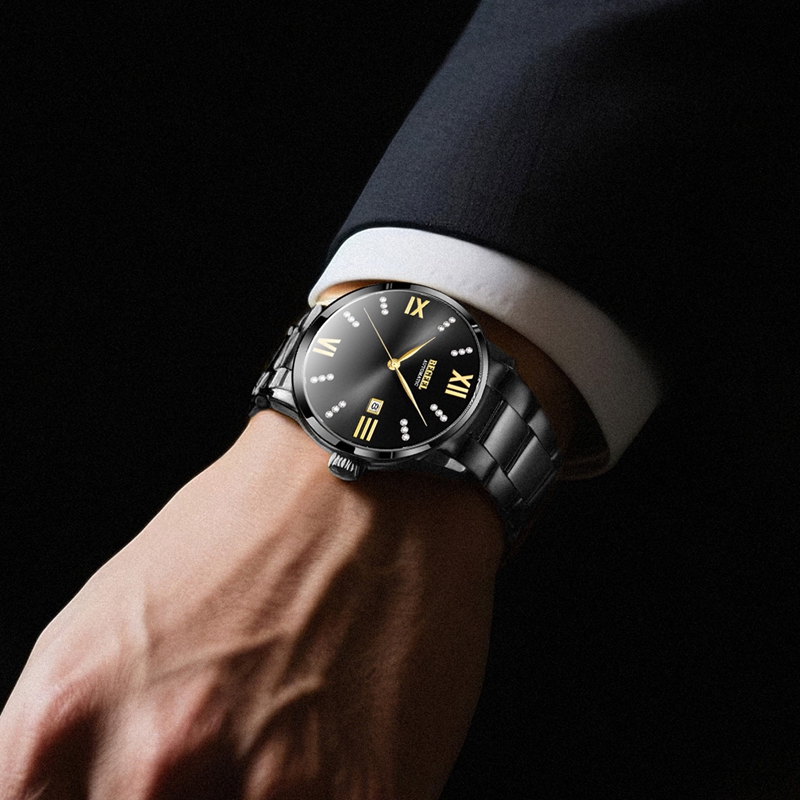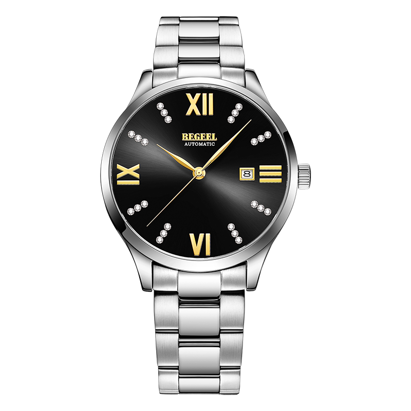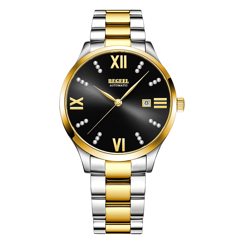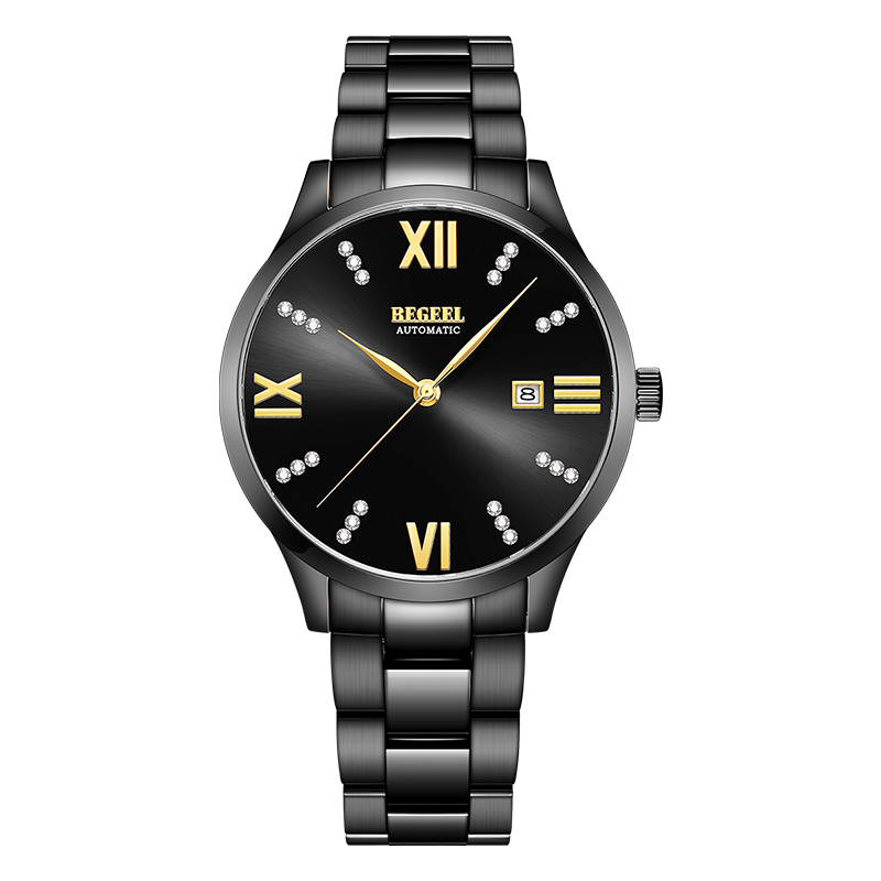 字面:太阳纹黑面,金条钉,镶6颗真托帕石,18颗锆石